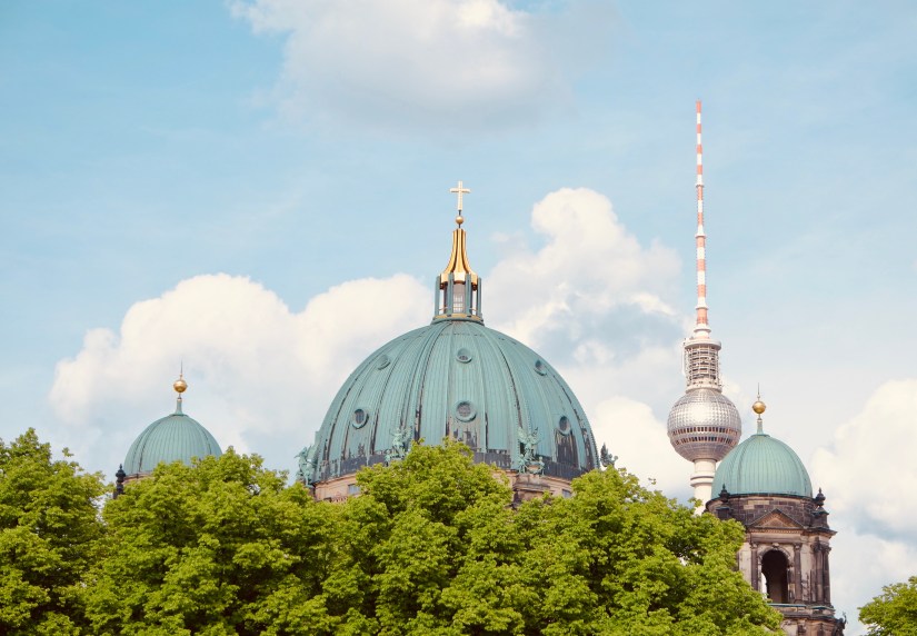 La Catedral de Berlín o Berliner Dom es la iglesia más grande de la ciudad, donde se realizan misas protestantes, conciertos y visitas. En su cripta está uno de los mayores sepulcros dinásticos de toda Europa. El parque de enfrente es el Lustgarden. Se construyó en el siglo XV como iglesia católica, después fue luterana y desde 1817, protestante. Sin embargo, se reconstruyó tantas veces que la catedral que conocemos ahora se terminó en 1905, con estilo neorrenacentista. Durante la Segunda Guerra Mundial sufrió grandes daños y durante la época de la RDA no ofreció servicios religiosos, como había de ser para seguir los ideales comunistas. Llaman mucho la atención sus cúpulas verdes, ¿a que sí? Ese color tan característico no es otro que el de la pátina, es decir, el aspecto que ha adquirido el cobre que recubre las cúpulas debido a la humedad.