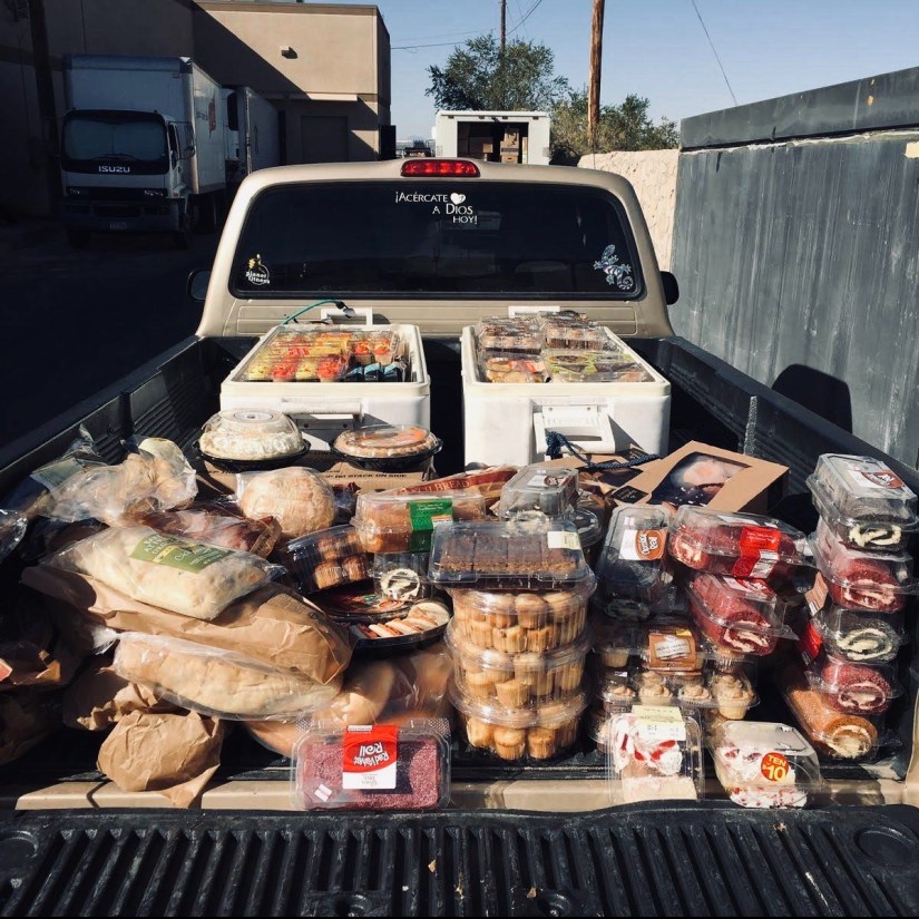 Strawberry and cream tarts, lemon bundt cake, artisan tiramisu, blueberry muffins, Dutch apple pie, chocolate eclairs, cherry cobbler, cinnamon rolls, and bread, bread, and more bread. All expired, but it’s better than nothing.